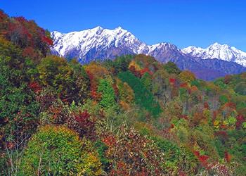 | 9月下旬頃になると、山頂から紅葉が始まります。昼夜の温度差が大きいとよりきれいな 紅葉になります。はたして今年はどうなることでしょう。木々の中でも見事なのは、やはりも みじの木ですね、画像に赤っぽく写っているのはすべてもみじの木です、真紅から深紅まで 色様々です。川場より尾瀬方面に向かい、坤六峠から鳩待峠を望む景色は画像の如く目に 写ります。標高2000mを超える山々の四季の移り変わりの中ででもっとも美しいのは、やは り紅葉の時期ですね、来年また芽吹くときの為に、それに冬の厳しさに耐えるために葉を落 としてしまうのです。秋を堪能してください。 |